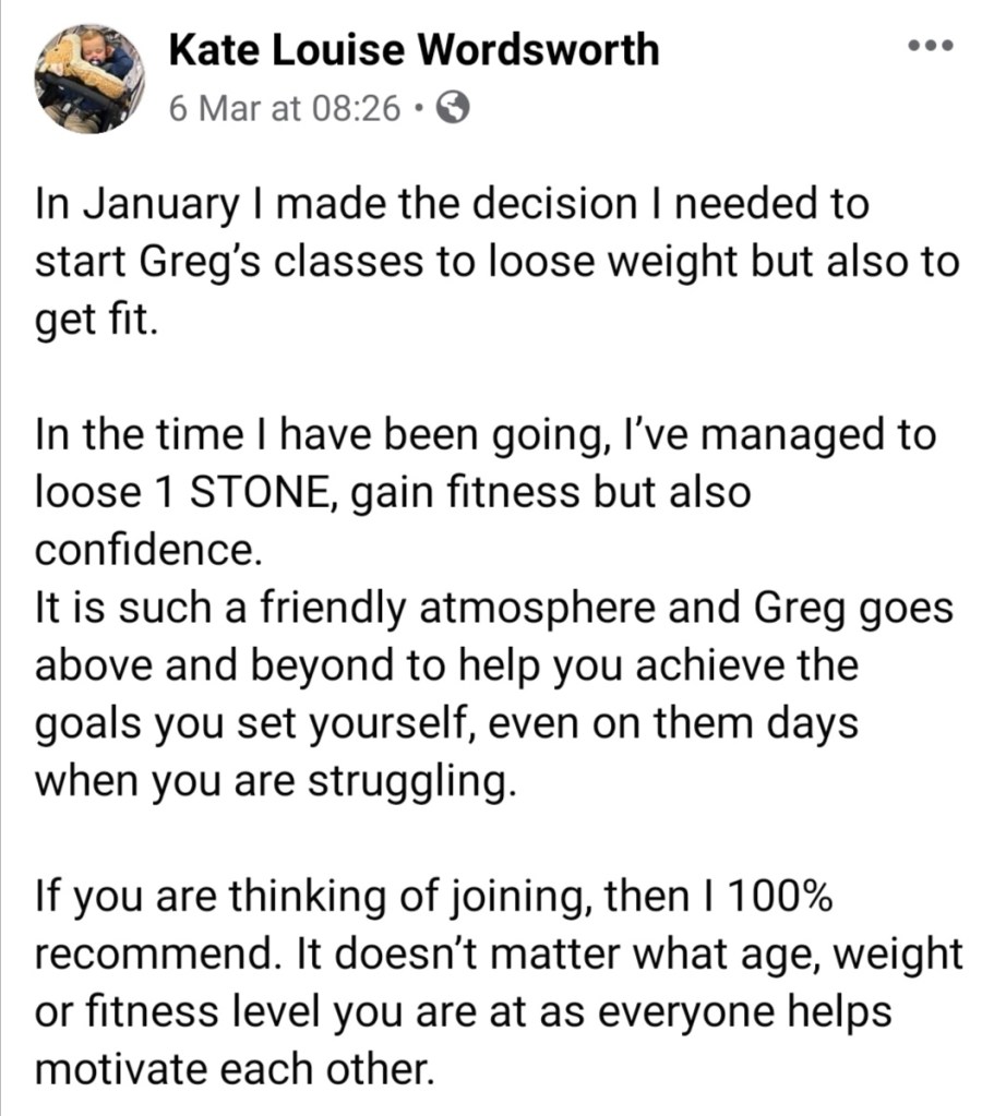 Another group member lost a stone since starting classes another good advertisement for the classes which is great