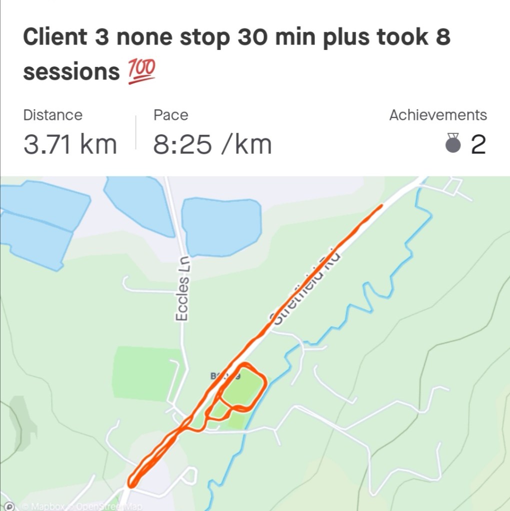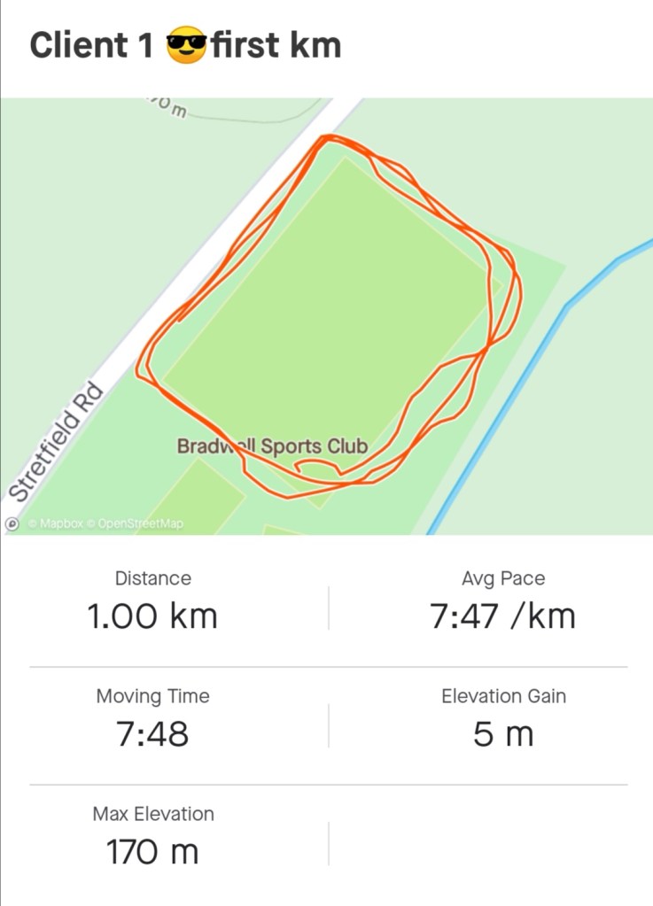 Most weve ran over this distance we got to 0.7k none stop walked then interval walked and ran the rest such a good improvement đ