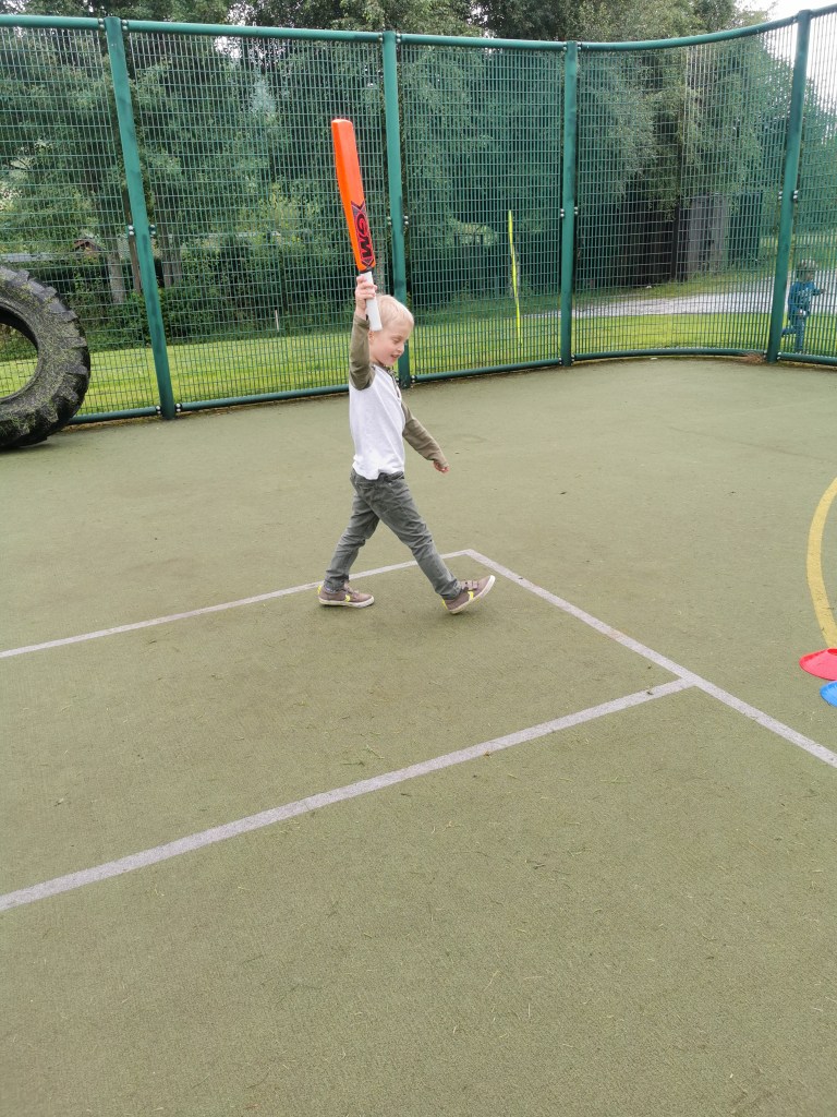 Jenson – my little cricketer he hit one straight over the fence today đ